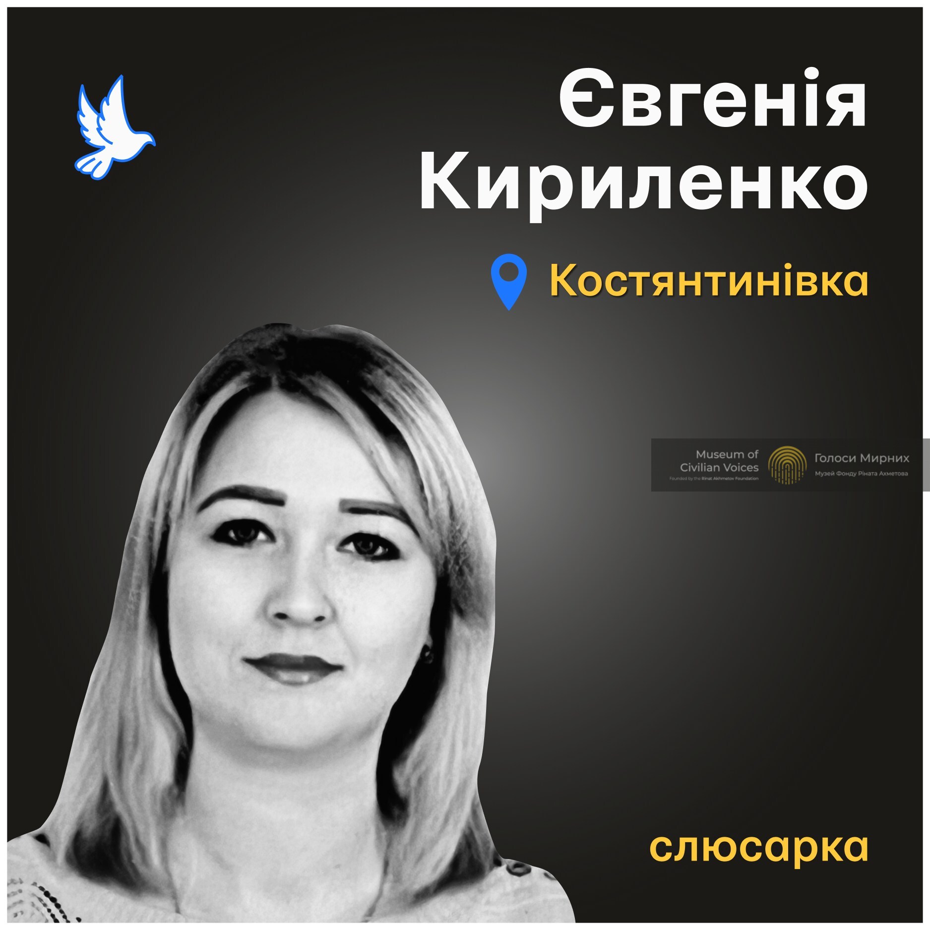 Євгенія Кириленко загинула 12 серпня 2024 року у Костянтинівці на Донеччині. Російська армія тоді завдала чотирьох ударів по місту ствольною артилерією. Євгенію ще намагались врятувати, але дорогою до лікарню вона померла.