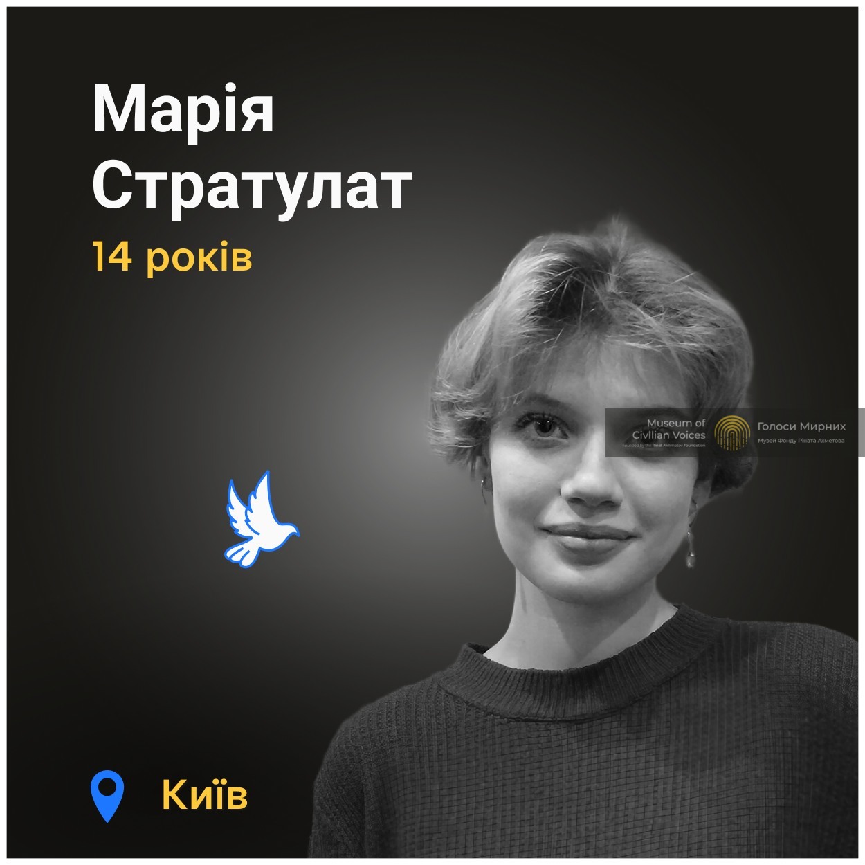 Життя школярки Марії Стратулат обірвалося під час ворожої ракетної атаки на Київ.