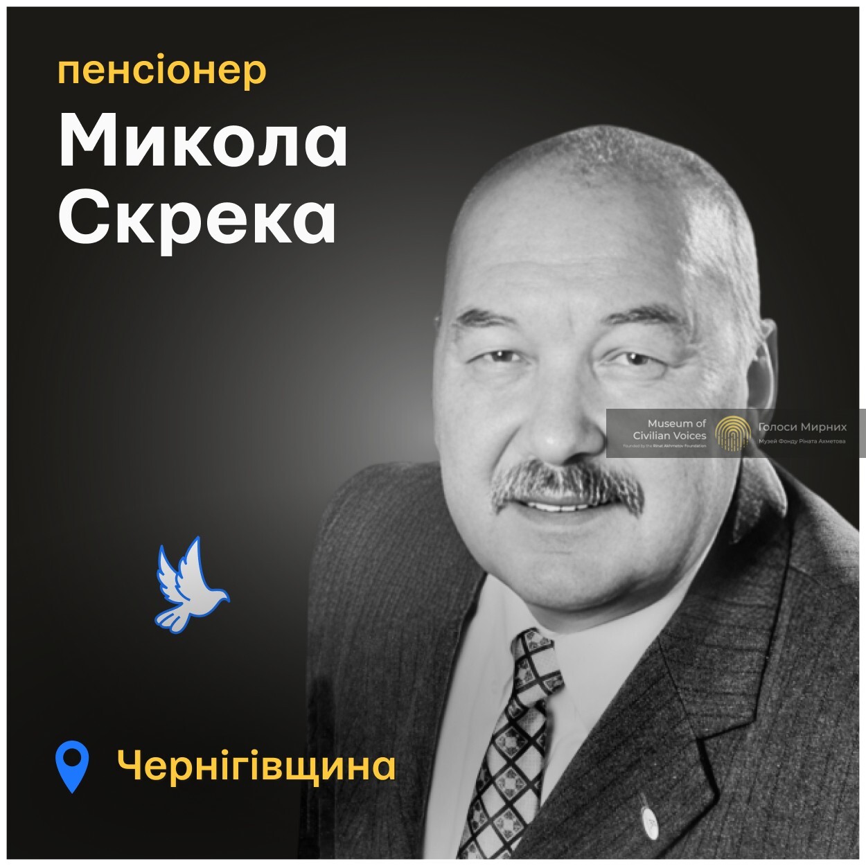 75-річний Микола Скрека мав ниркову недостатність, тому потребував гемодіалізу тричі на тиждень. Востаннє на процедуру зміг поїхати 26 лютого 2022-го, а потім через його село Кувечичі, що за близько 30 кілометрів від Чернігова, пішли колони російської техніки. Їхати стало небезпечно: шляхи обстрілювали. Та прожити без очищення крові Микола довго не міг. Родина вирішила прориватися до лікарні у Чернігів, поки чоловік ще міг сісти за кермо.