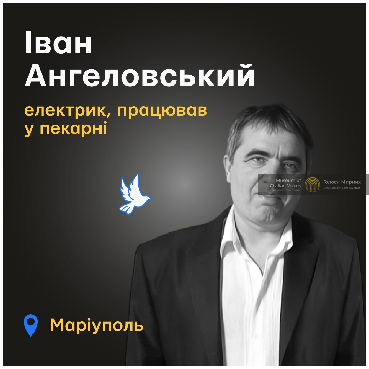 Іванові Ангеловському було 67 років. Два десятиліття він працював на заводі «Азовсталь» електриком. Потім влаштувався у хлібопекарню. Обожнював книги, мав їх було дуже багато.