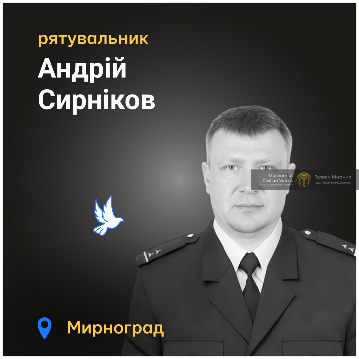 Андрієві Сирнікову було 44 роки. Він працював у Головному управлінні державної служби з надзвичайних ситуацій України у Запорізькій області. Мав звання головного майстер-сержанта служби цивільного захисту. Користувався повагою та авторитетом серед колег і друзів.