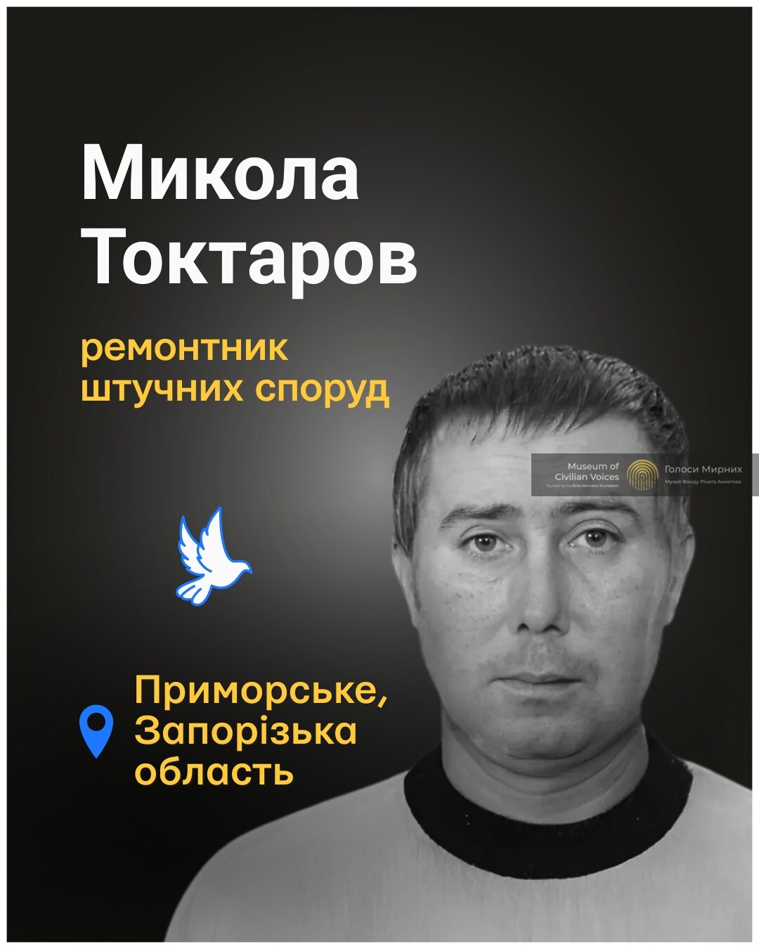 35-річний Микола Токтаров загинув 2 березня 2024 року в селі Приморське на Запоріжжі.