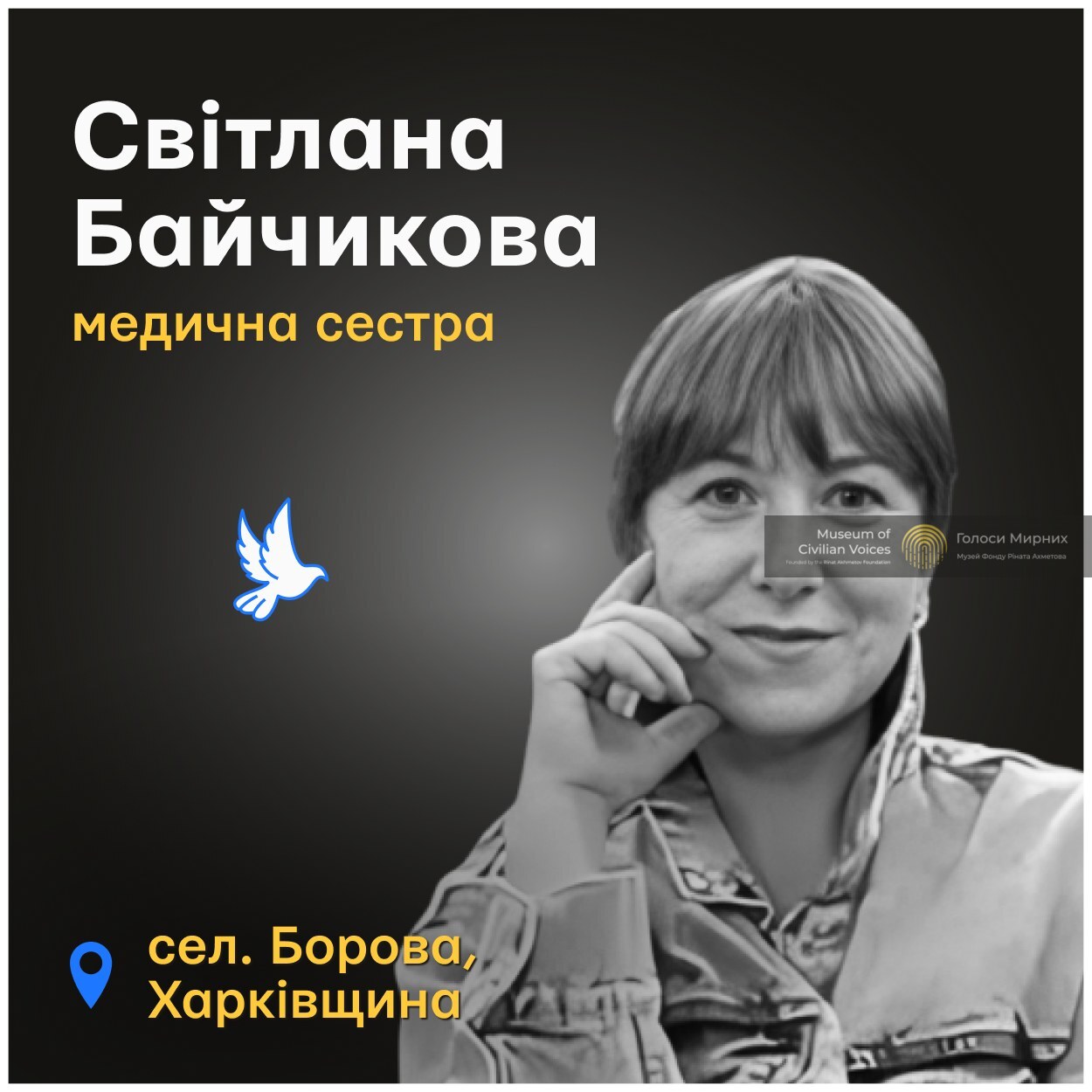 На початку вересня Світлані Байчиковій виповнилося 50 років. Вона працювала медичною сестрою Борівської центральної лікарні. Була енергійною та життєрадісною людиною.