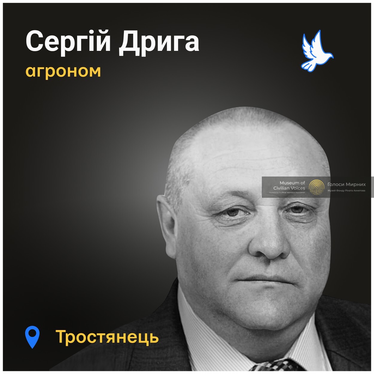 60-річного Сергія Дригу російські військові розстріляли 25 лютого на виїзді з міста Тростянець Сумської області. Близько 8.00 Сергій їхав у власному авто на роботу до села Підліснівка. Російські військові почали стріляти по його машині автоматними та кулеметними чергами. Сергій загинув за кермом.