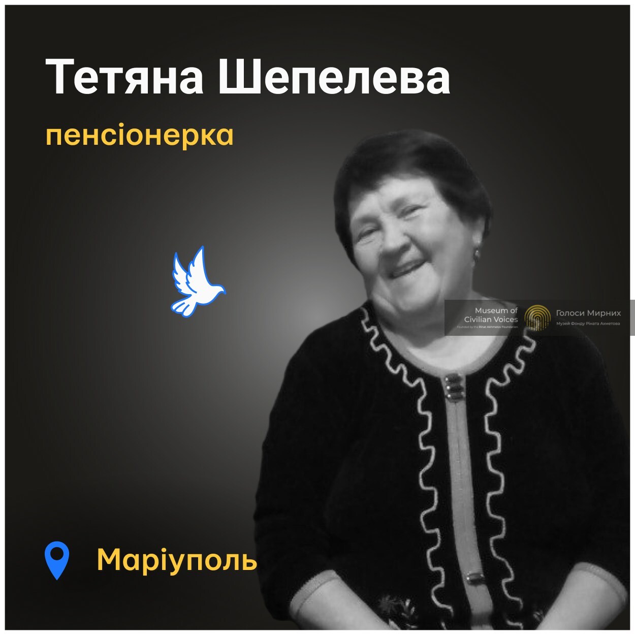 Тетяна Шепелева загинула 13 березня 2022 року в Маріуполі Донецької області. Їй було 69 років.