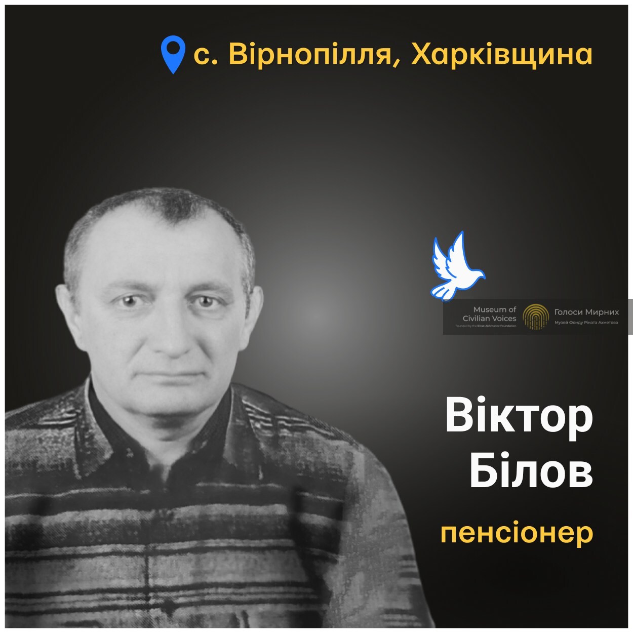 64-річний Віктор Білов підірвався на міні у селі Вірнопілля Ізюмського району Харківщини. Трагедія сталася 5 квітня 2022 року.