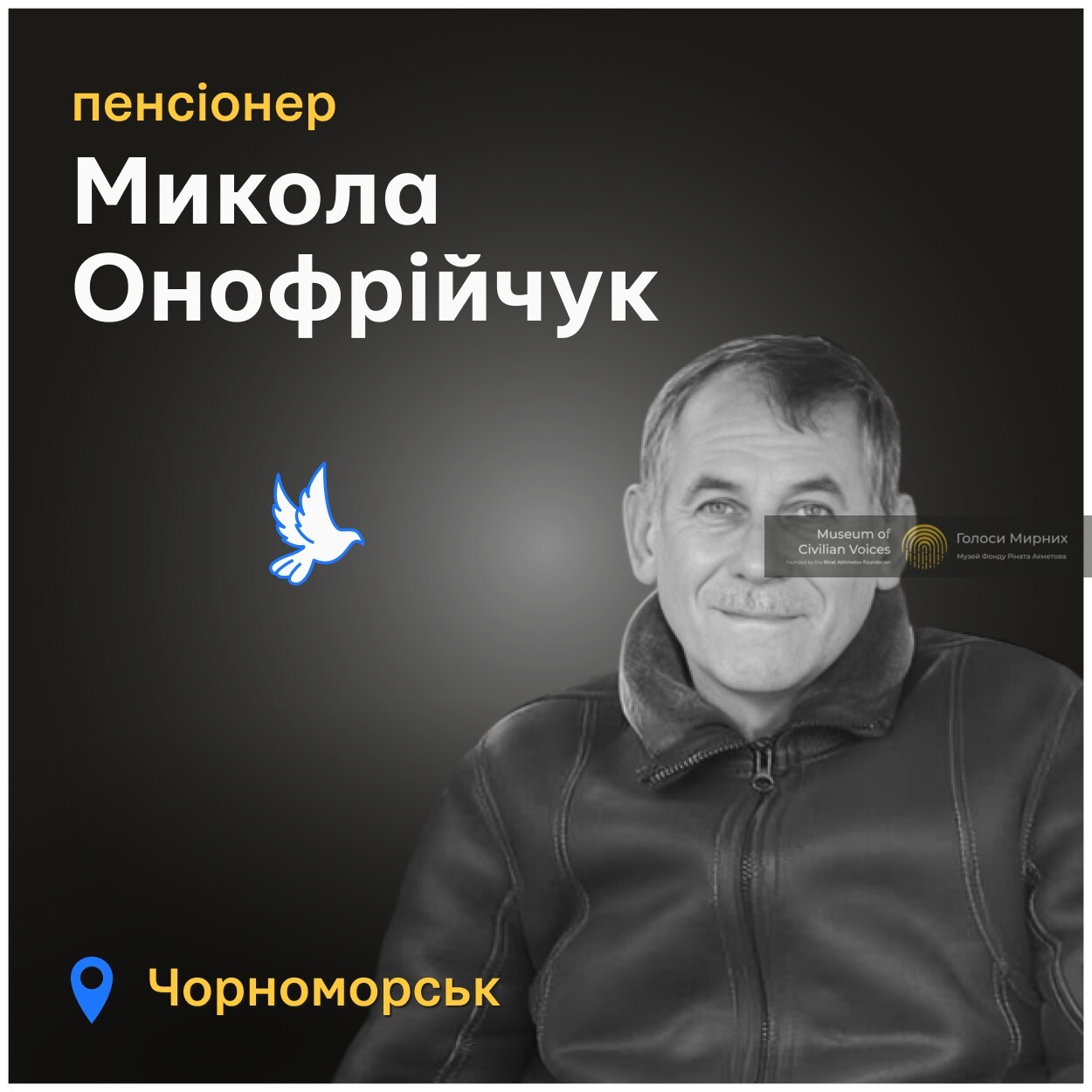 Життя Миколи Онофрійчука відібрала російська армія. Ввечері 14 вересня 2024 року ворог атакував місто Чорноморськ балістичними ракетами і влучив по будинку, де Микола жив із дружиною Аллою. Подружжя загинуло, так і не встигнувши дістатися укриття.