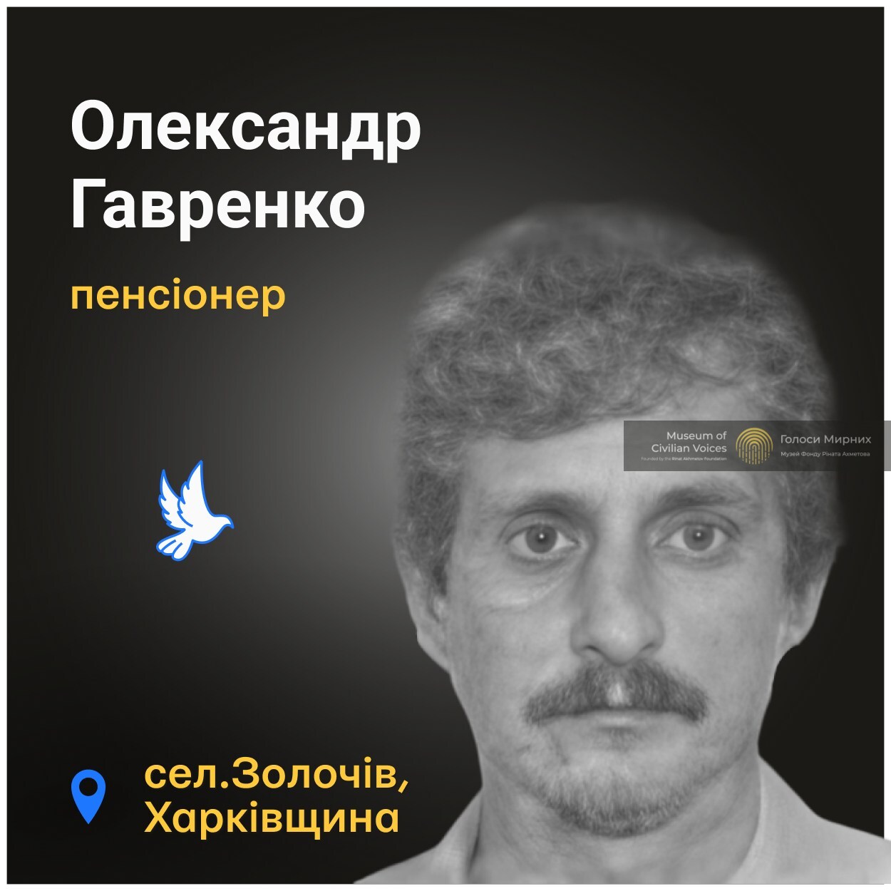 Олександр Гавренко загинув у селищі Золочів на Харківщині 1 травня 2024 року. Російська армія атакувала вулиці та площі цього населеного пункту трьома керованими авіабомбами.